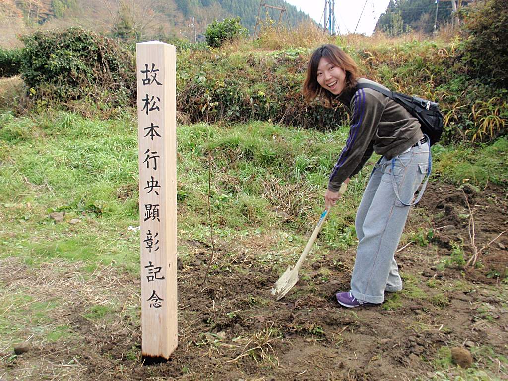 今年の締めくくりのこの日は、今年収穫した物で、餅つき・そば打ち・新米でのおにぎり・焼き芋・交流懇親会、自然塾運営にご功績のあった、故安藤・松本さんの顕彰植樹祭を行いました。